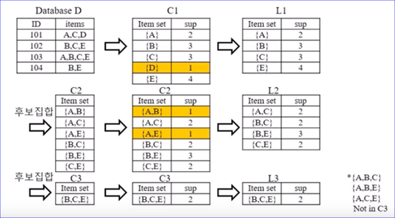 제외하면 L2 라는 새로운 후보집합을 도출할 수 있다
