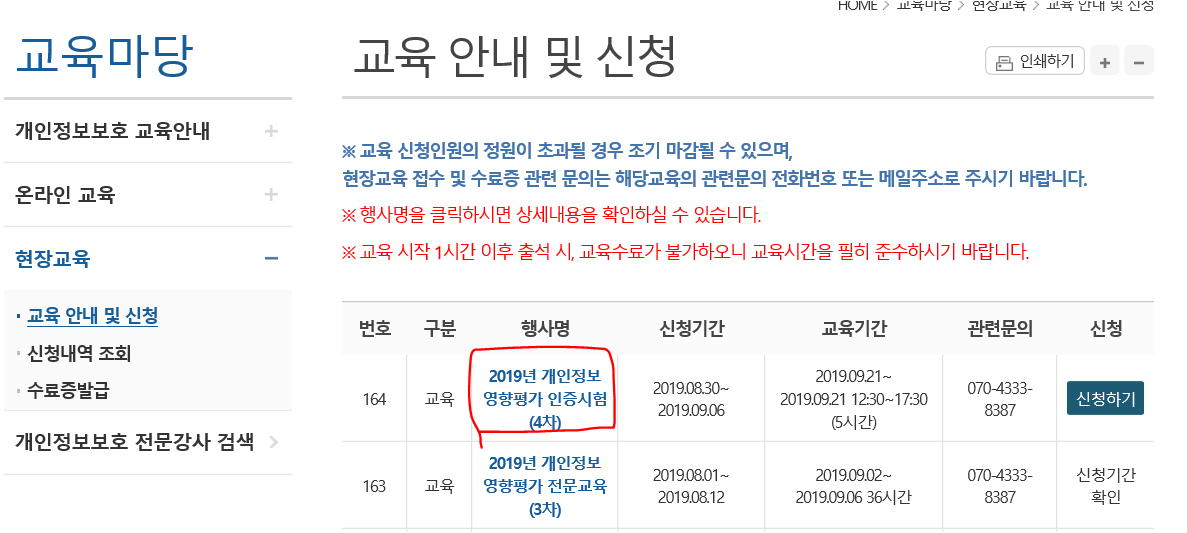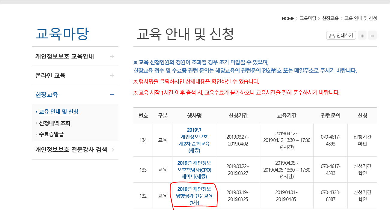 오프라인 교육신청은 '개인정보보호 종합포털' 즉 https://www.privacy.go.kr 에서 신청하시면 됩니다.